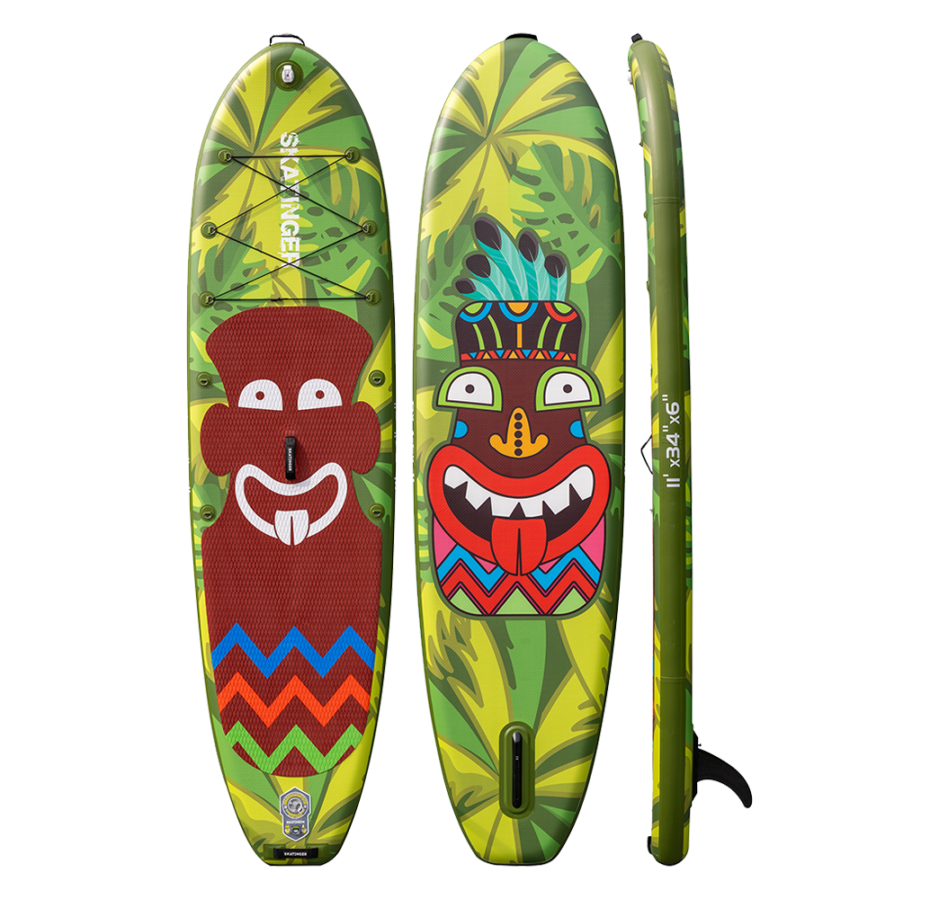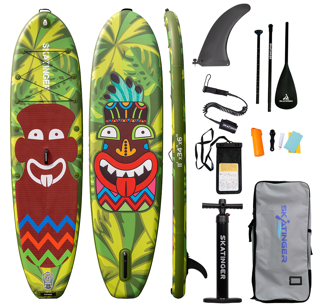 Skatinger Crazy Tribe şişme SUP tahtası, cesur tasarımı ve oyunbaz enerjisiyle SUP deneyimine canlılık katar – rekreasyonel kürek, hafif touring ya da ailece su keyfi için idealdir. 335 cm uzunluğu, 86,4 cm genişliği ve 15,2 cm kalınlığı sayesinde geniş bir kullanıcı kitlesi için güvenilir stabilite ve güçlü yüzdürme sunar.