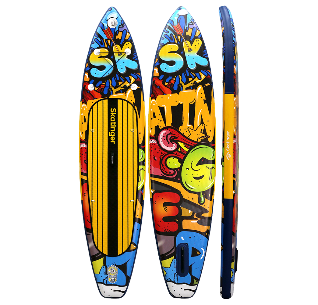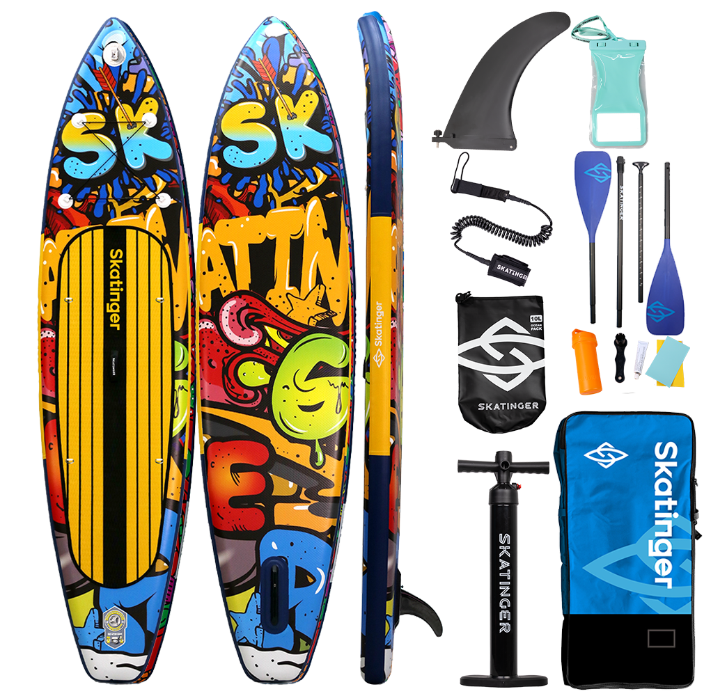 Graffiti Yellow SUP tahtası, şehirli duruşu üst düzey touring performansıyla buluşturur. 350,5 cm uzunluğu ve 81 cm genişliği sayesinde hız ve denge arasında mükemmel bir uyum sunar; koylarda, nehirlerde veya göllerde süzülürken öne çıkmak isteyen sporcular için idealdir. Canlı sokak duvar resimleri ve pop-art dokunuşlarından ilham alan bu tasarım, rengi, hareketi ve özgürlüğü benimseyenler için üretildi.
