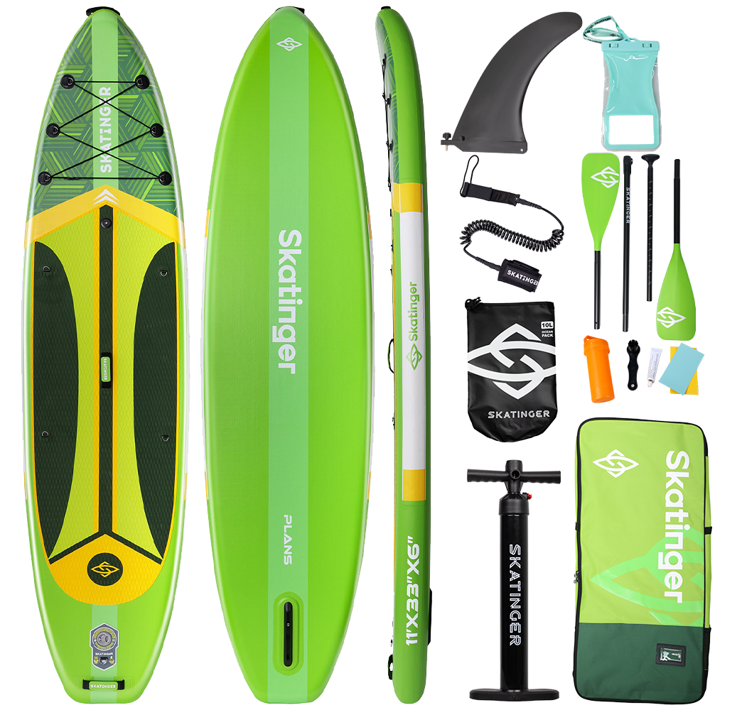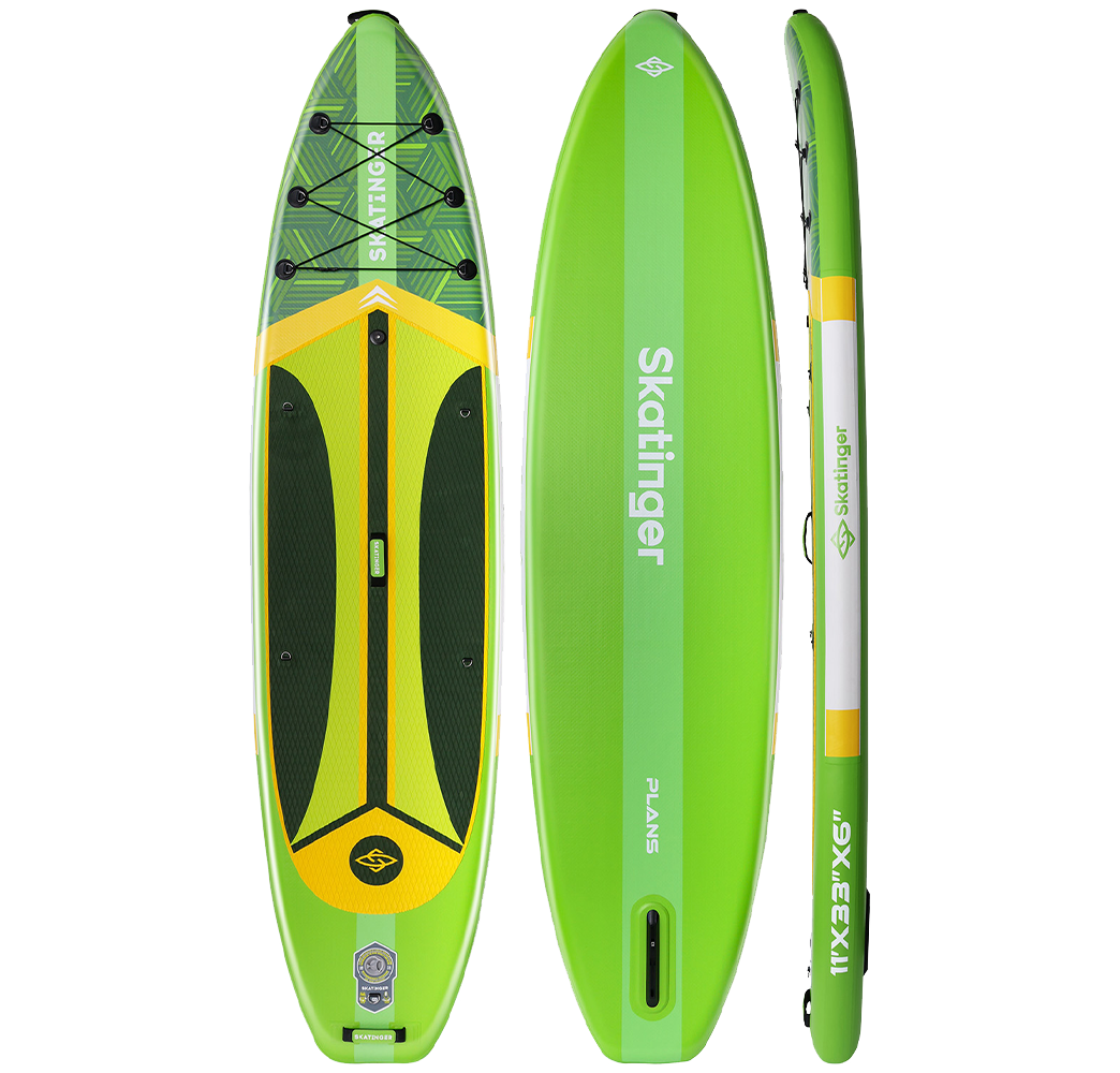 Plans Green SUP tahtası, özgürce hareket etmek, dengede kalmak ve eğlenceli bir güvenle kürek çekmek isteyenler için tasarlandı. Canlı neon yeşil tonu ve cesur sarı detaylarıyla bu tahta; sakin sabahlara, rahat öğleden sonralara ve su üzerindeki renkli maceralara karakter katar.