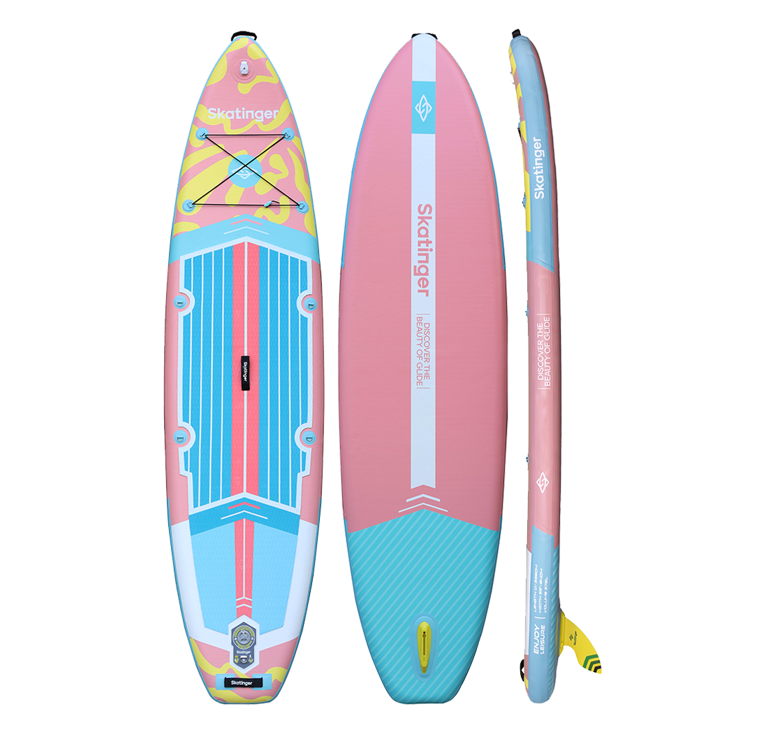 Kaymaz EVA deck yüzeyi, pürüzsüz single-layer yapısı ve yumuşak hatları sayesinde bu tahta hem kullanımı keyifli hem de göze hitap eder. Hızla şişirilir, suda rahatça yönlendirilir ve kompakt saklama için kolayca sarılır.