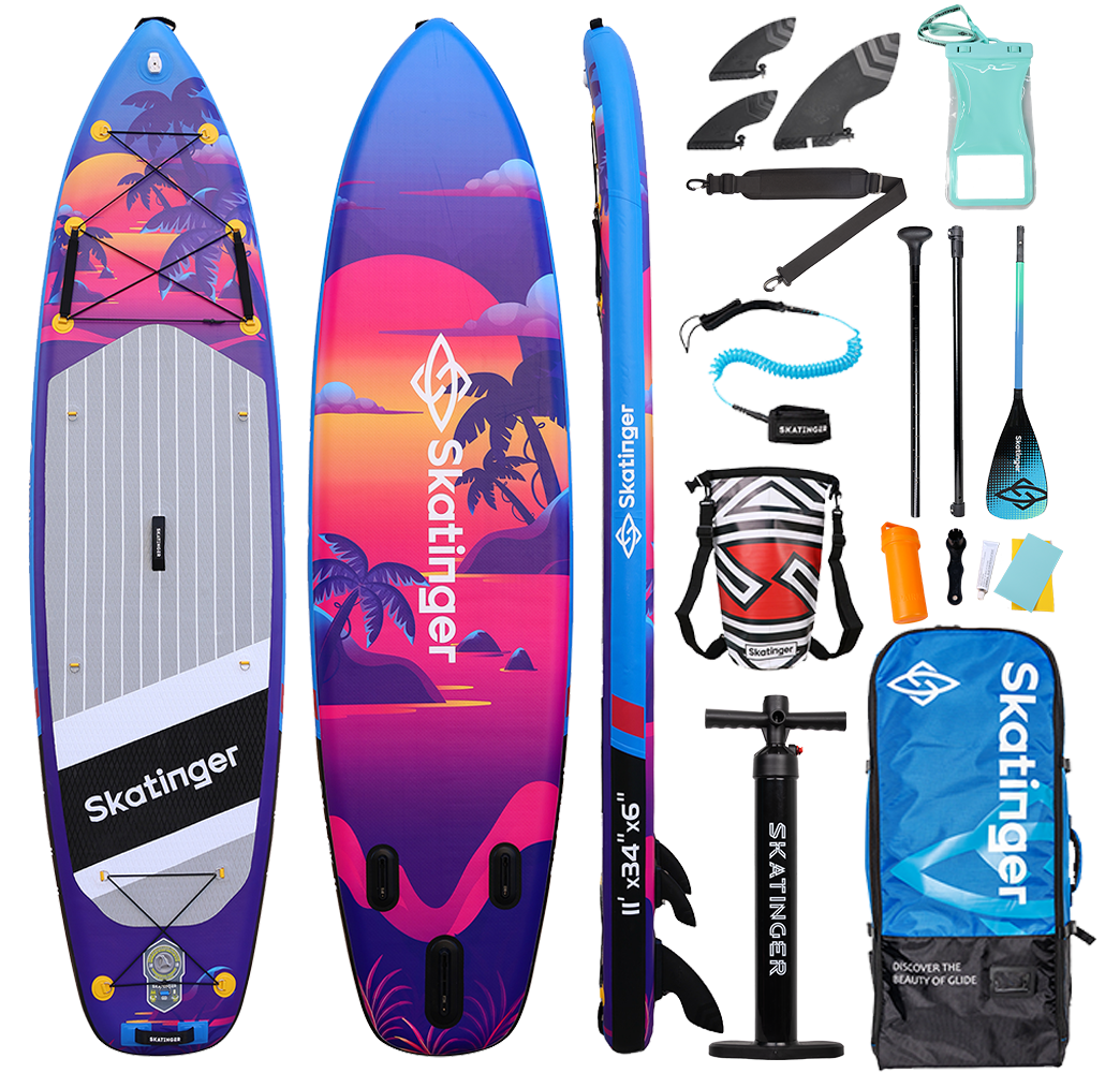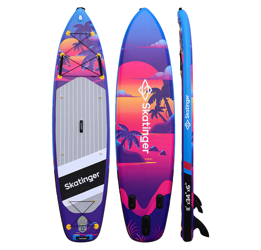 Sunset, altın saatin peşinden giden hayalperestler için tasarlandı – gökyüzünün turuncu, mor ve pembe tonlara büründüğü, denizin ise tüm bu renkleri sakinlikle yansıttığı anlar için. Tropikal geçişli tasarımı ve dengeli yapısıyla Sunset, rahatlatıcı ama aynı zamanda eğlenceli bir SUP deneyimi sunar; akşam seansları, hafif sürüşler ve doğanın büyüsünü paylaşmak için idealdir.