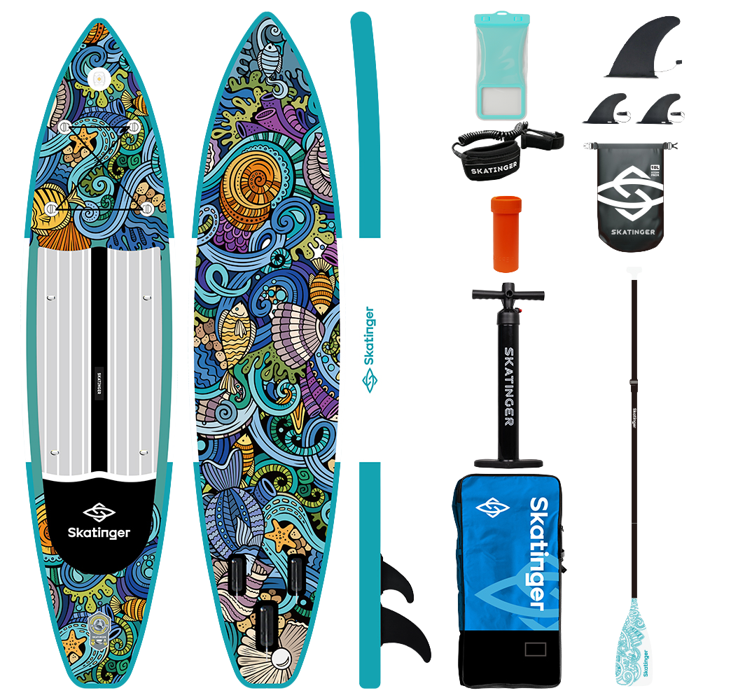 350,5 cm uzunluğu ve 81,3 cm genişliğiyle Undine, orta seviye kürekçiler veya hevesli yeni başlayanlar için çeviklik ve denge arasında ideal bir denge sunar. Tek katmanlı drop stitch yapısı tahtayı hafif ama sağlam kılarken, dokulu EVA yüzey uzun süreli kullanımlarda konfor sağlar.
